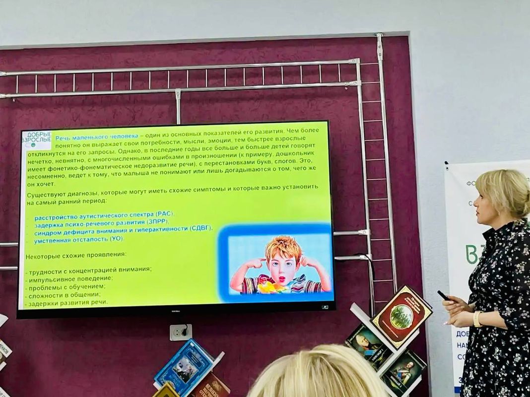 Далее выступила Татьяна Золотарёва, президент фонда «Добрые Взрослые». В своём выступлении она рассказала о том, что аутизм — не приговор, развеяла мифы и обозначила реальность аутизма, поделилась успешными практиками, направленными на социализацию и развитие детей с ментальными расстройствами, а также планами на будущее. Татьяна подчеркнула, что такие мероприятия помогают привлечь внимание общества к важным вопросам инклюзивности и взаимопомощи.