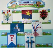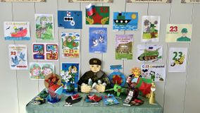 Тематические выставки детских работ проводятся с целью пропаганды интереса и уважения к защитникам Отечества, воспитание в детях интереса к отечественной истории, а также предоставить возможности детям показать свои творческие способности.