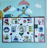 В преддверии этого праздника в холодном холле, зимнем саду, коридорах детского дома были оформлены выставки детских рисунков и поделок «На страже Родины своей», «Ура! 23 февраля», на которых были представлены творческие работы учащихся.