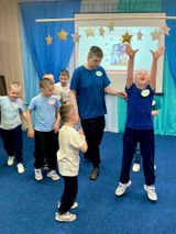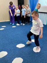 Далее для ребят было проведено космическое путешествие, которое началось с космозарядки, потом игровую программу продолжили конкурсы: «Построй ракету», «Достань Звезду», «Лунопрыги», «Пройди через метеоритное поле» и другие.