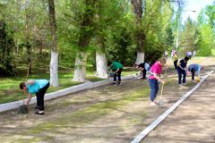 Сотрудники очистили территорию от прошлогодней листы, вскопали клумбы, побелили