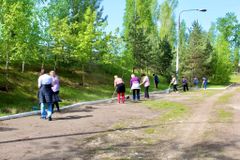деревья, бордюры, окопали деревья, посеяли газонную траву.