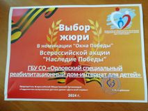 В преддверии празднования 79-й годовщины Победы в Великой Отечественной войне сотрудники и воспитанники детского дома приняли участие в конкурсе «Окна Победы».