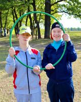 Педагогами были проведены спортивные соревнования с обручами, бадминтоном, мячами, скакалками, кеглями.