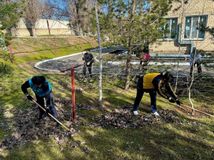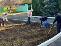 Сотрудники детского дома навели порядок на территории детского дома после зимы.