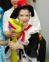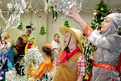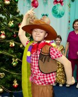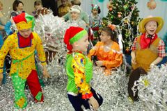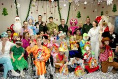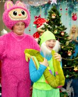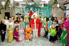 Гости поздравили ребят с наступающим Новым годом , подарив им развлекательную программу со сказочными героями - Эльзой, Мишкой и Лабубой.