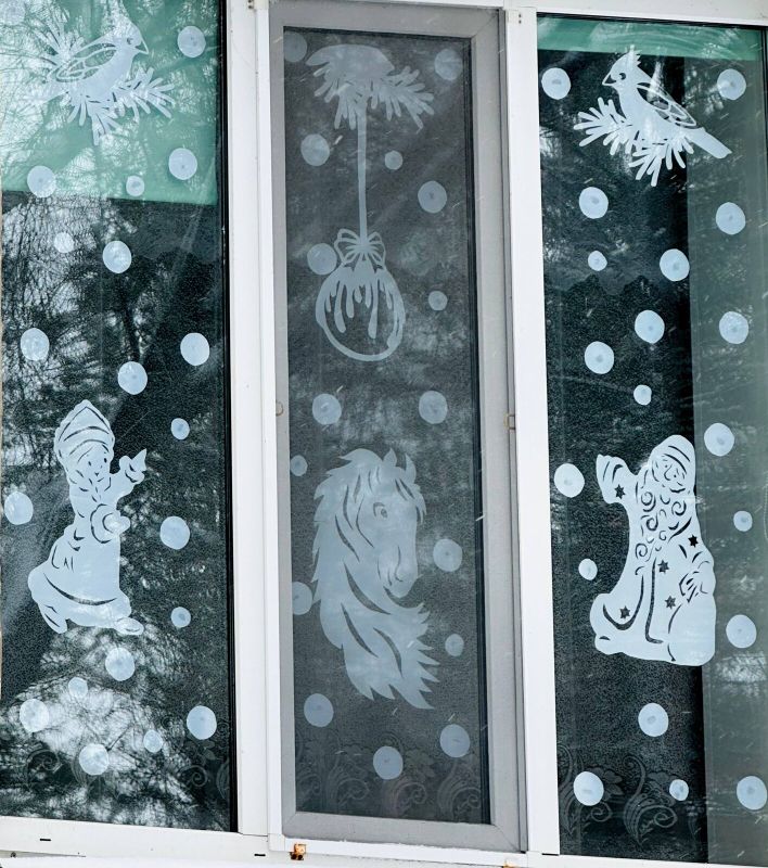 Сотрудники и воспитанники детского дома оформили окна зимними композициями, наполнив их волшебными сюжетами с главным символом 2026 года — Лошадью